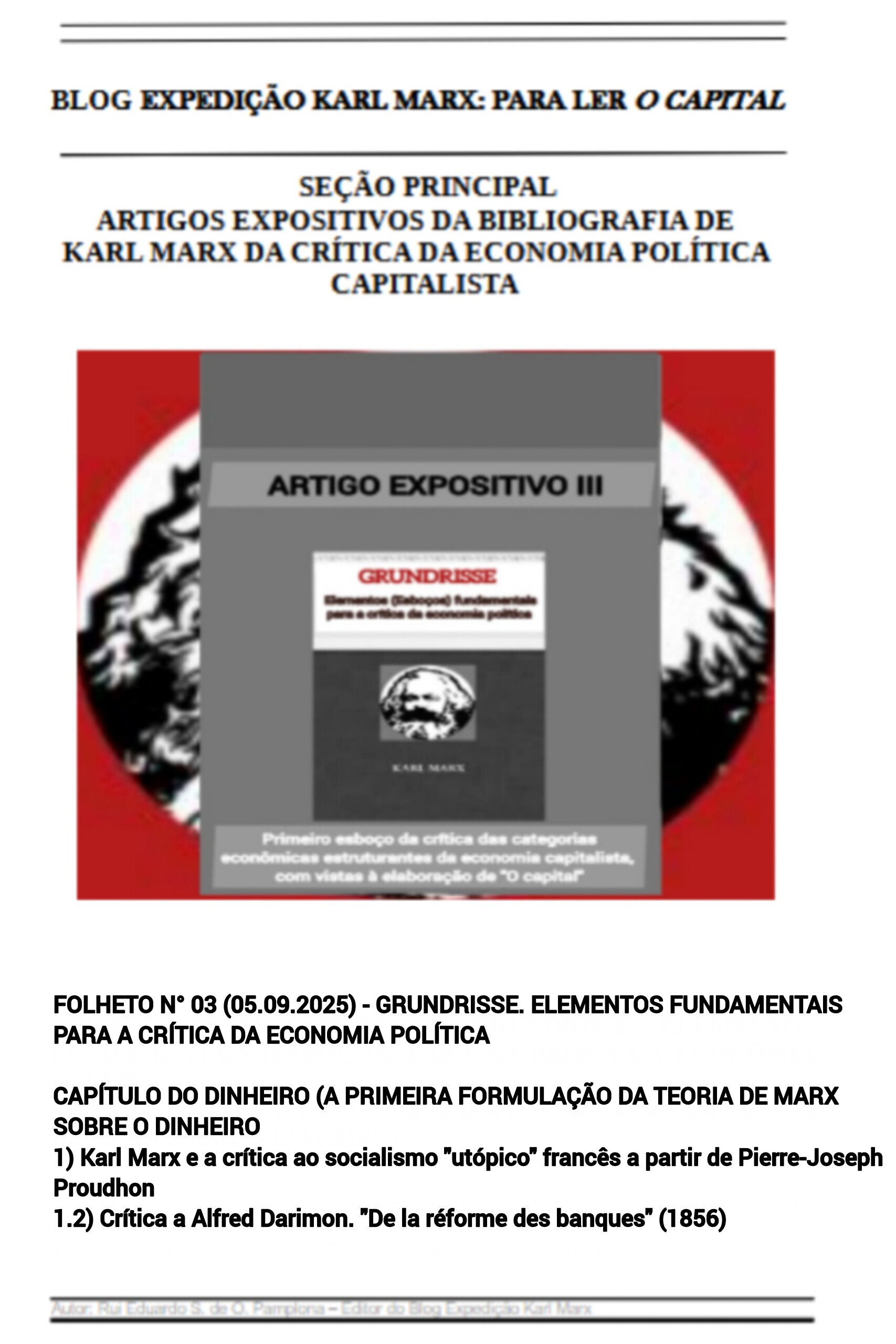 Visando, em um primeiro momento, apenas o nosso próprio conhecimento, no decorrer dos trabalhos de pesquisa do acervo autoral de Karl Marx da crítica à economia política capitalista, decidimos torná-los público, passo a passo e full time, obra por obra, capítulo por capítulo.